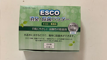ESCO消臭・除菌パウダーとは水に溶かすことで次亜塩素酸水を作ることが出来るパウダーです。次亜塩素酸水とは手指やお部屋の除菌に使えるお肌に優しい消毒液です。次亜塩素酸水は厚生労働省がその効果を証明しているので安心してご利用いただけます。